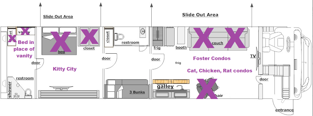 With our new bus, we are getting it ready for the cats and crew, starting out with building a new Kitty City! The bus will take a few more trips to Florida to get everything modified for our needs including for fostering.